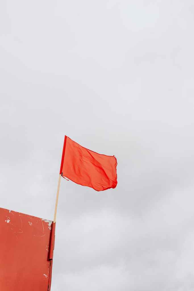 The red flag above is to warn of the dangerous waves in the ocean. In relationships we can have several red flags. We may also have red flags in our health to point us towards an issue. We can also call them warnings.